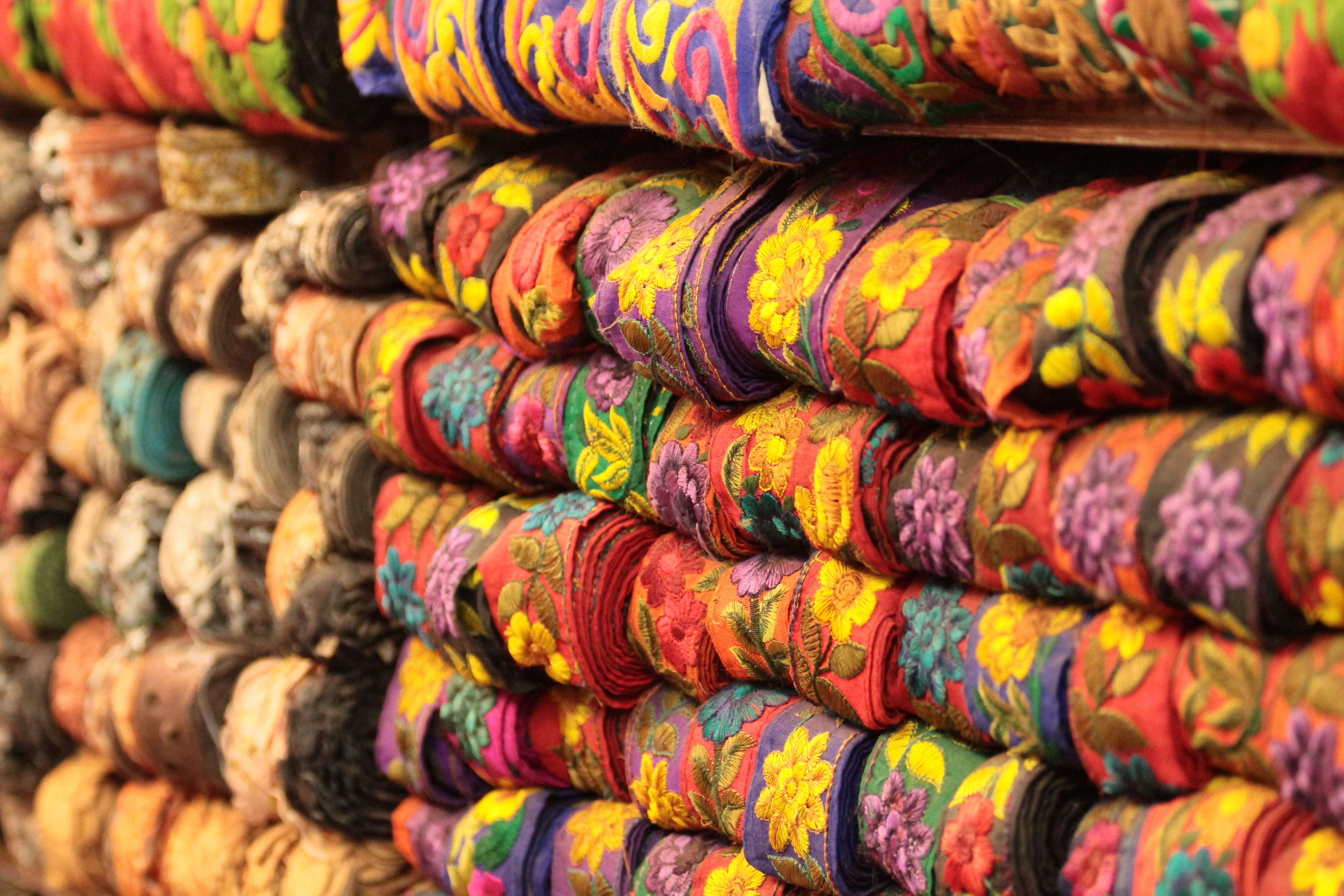 The next place I visited was Chandni Chowk, and yes, every tourist to Delhi has probably been there. But remember, this is for the Delhiite, like me, who has always known how to avoid Chandni Chowk and the Paranthe wali gali. Thanks to my dear cousin, and Delhi’s Metro, I finally saw one of the oldest and most charming of all markets in Delhi ( old Delhi), with narrow streets ( I should totally have a post just on narrow streets in India) lined with all kinds of garments and ostentatious embellishments for the traditional Indian outfits. The true surprise here was a whole street lined on both sides with borders – Kinari Bazar kinara being hindi for ‘border or side’ or ‘ends’ in this case of kurtas or shirts. These are embroidered with astonishing colors, gold threads, stones, wooden beads, feathers… You can get a whole piece already cut in the shape of the neck, like a necklace, but to be stitched on to a kurta or a shirt.