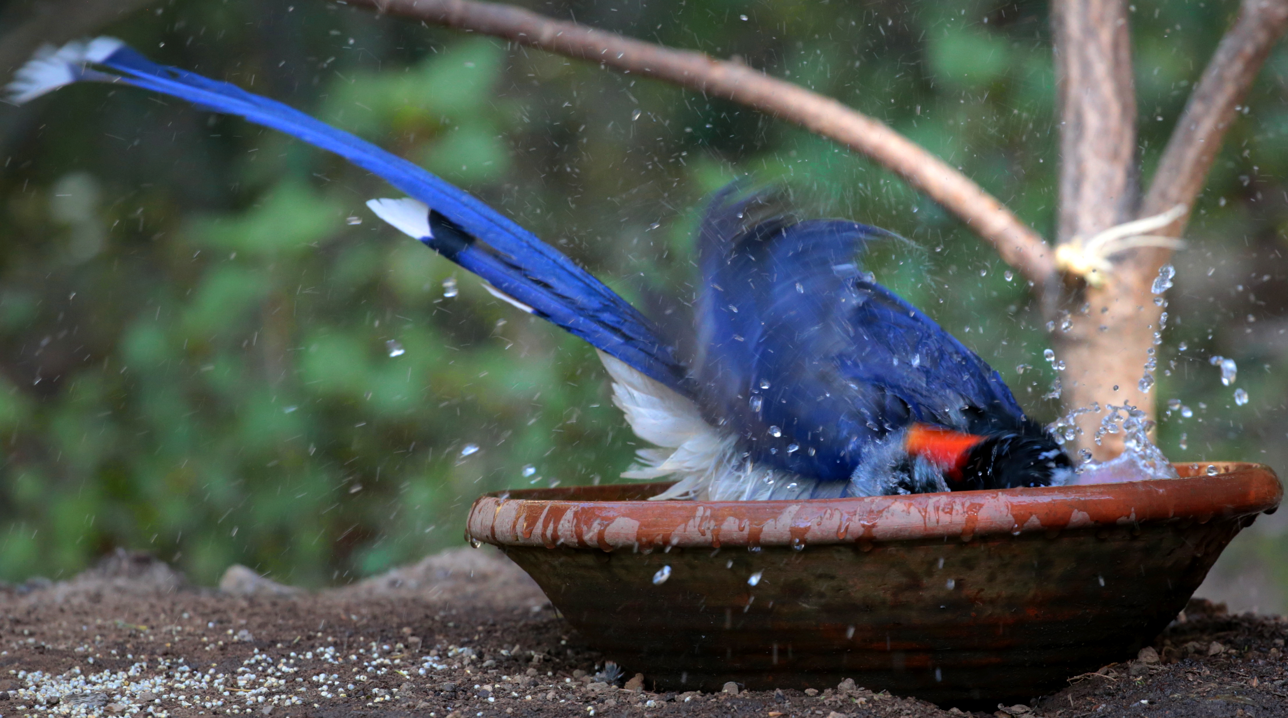 When a playful magpie takes a bath