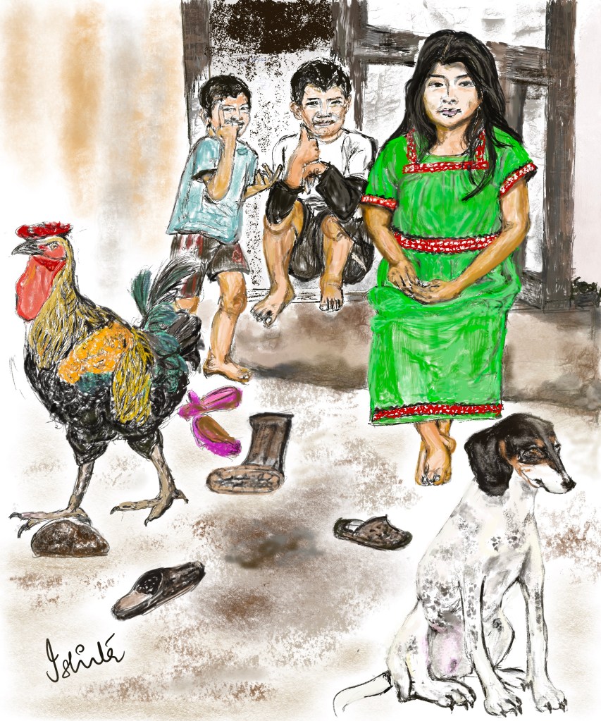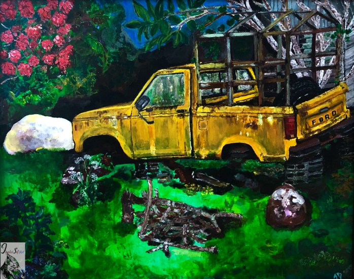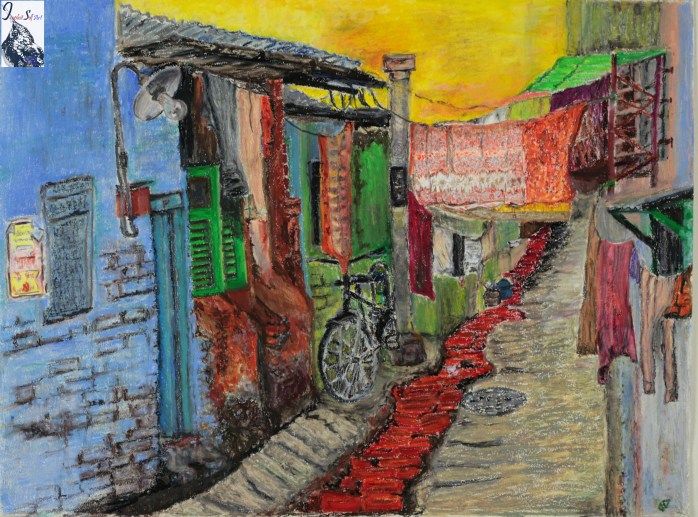 This was the shimmering amazon after the sun had just set, as the riberenos made their way back home, trying to beat the incoming rain (although I doubt they worry too much about that) on a canoe. Perhaps with the day’s catch, or a football game. The boy on the right had seen so many of these breathtaking sunsets, that he had been looking at me taking the shot. The fiery amazon. When the light hits it right, this painting lights up with reflections that take me right back to the river that changed it all.. 24″X18″. Acrylic on mixed-media paper. ‘Old flame’. Belize: People on islands loving their old trucks, not willing to let go despite the fact that they may never drive them again. This Belizean home in the remote Lamanai island is attached to their truck, despite having few drivable roads, as it only has about three small villages. Acrylic on canvas (30″X 20″). ‘Kolkata Joy’. People in Kolkata, India optimizing use of space, their daily life spilling onto their narrow lanes, with big hearts and who knows how many stories.. Soft oil pastel on drawing paper (24″X 18″).
